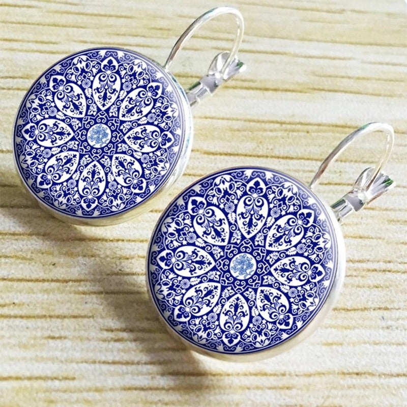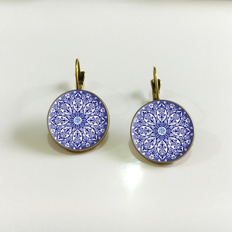 henna glass cabochon earrings