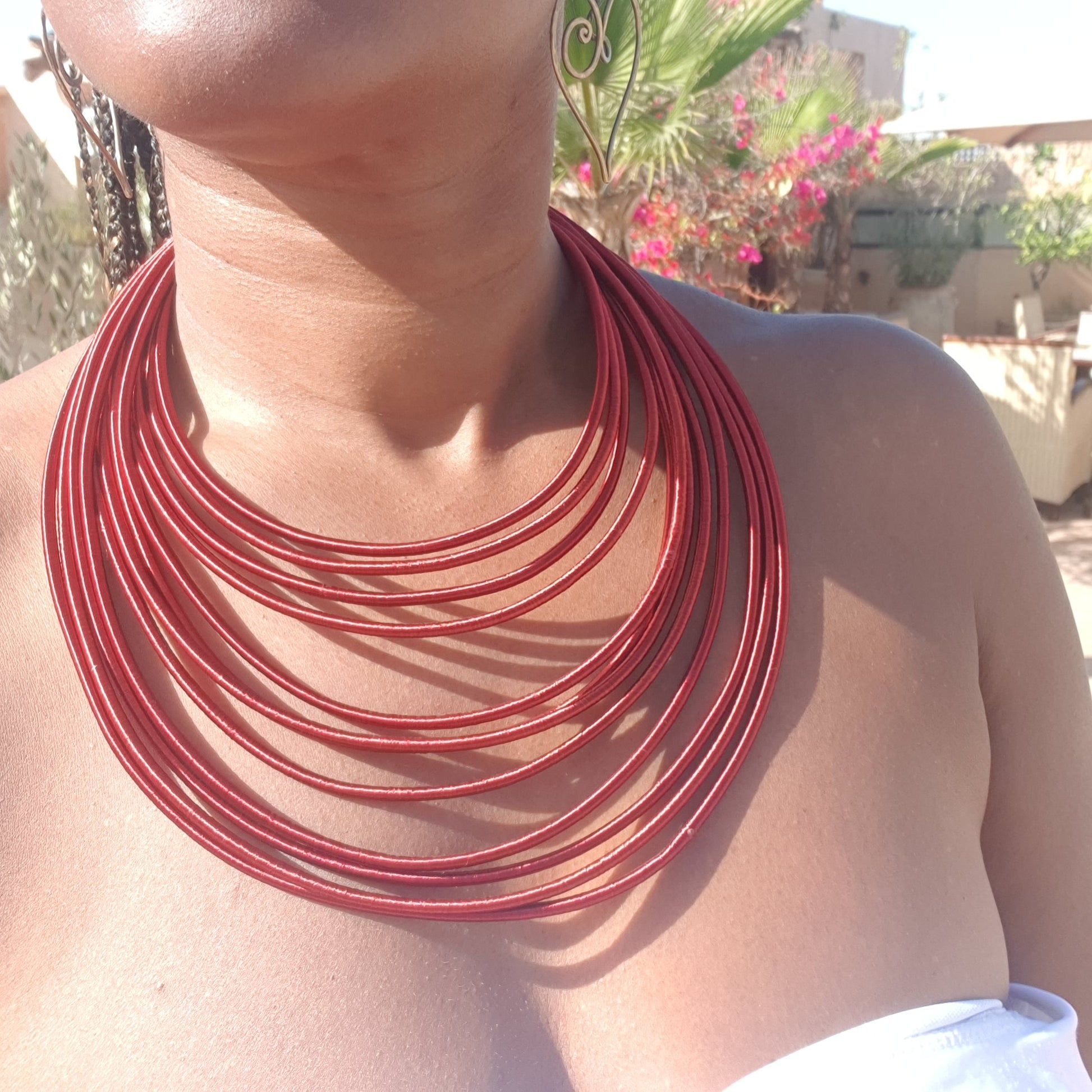 Copper / Bronze 12 strand silk rope layered statement necklace