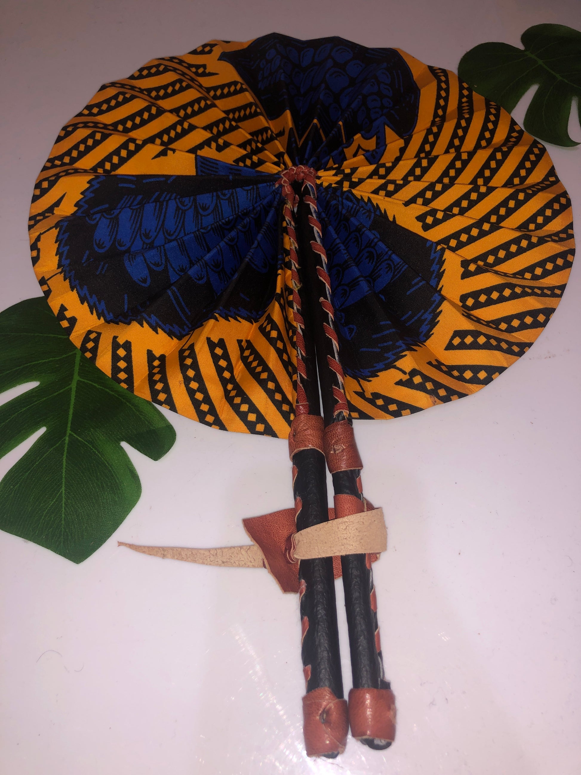 African Leather Folding Fan
