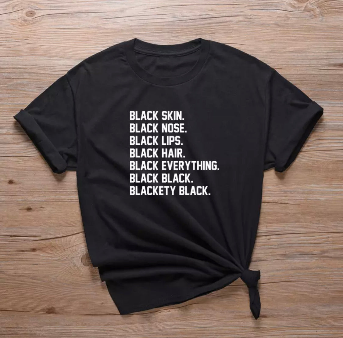 Black Skin. Black Nose. Black Lips. Black Hair. Black Everything. Black Black. Blackety Black. T-Shirt