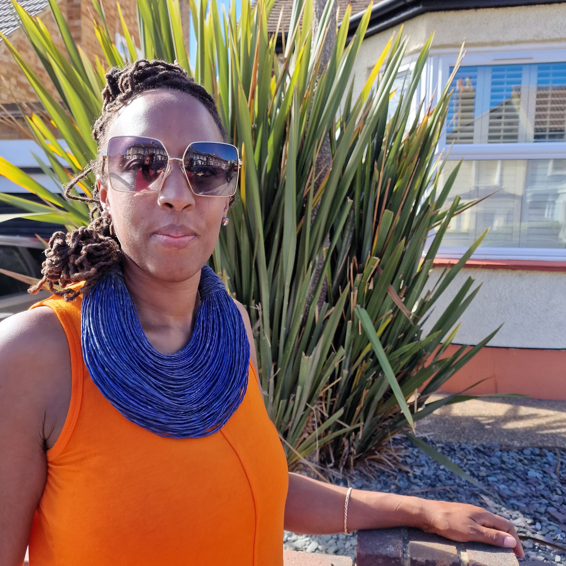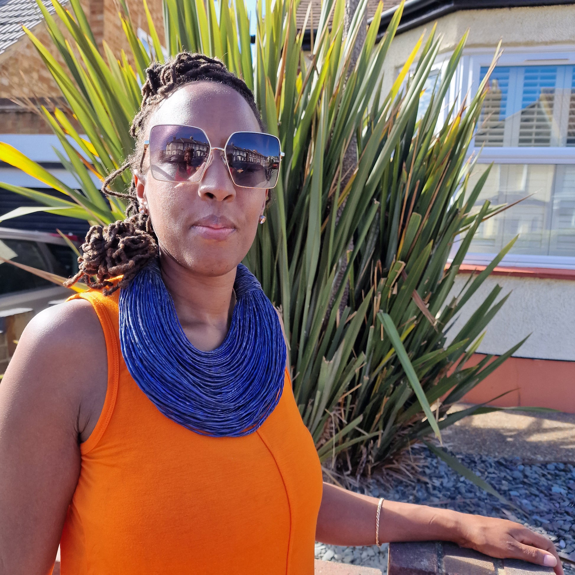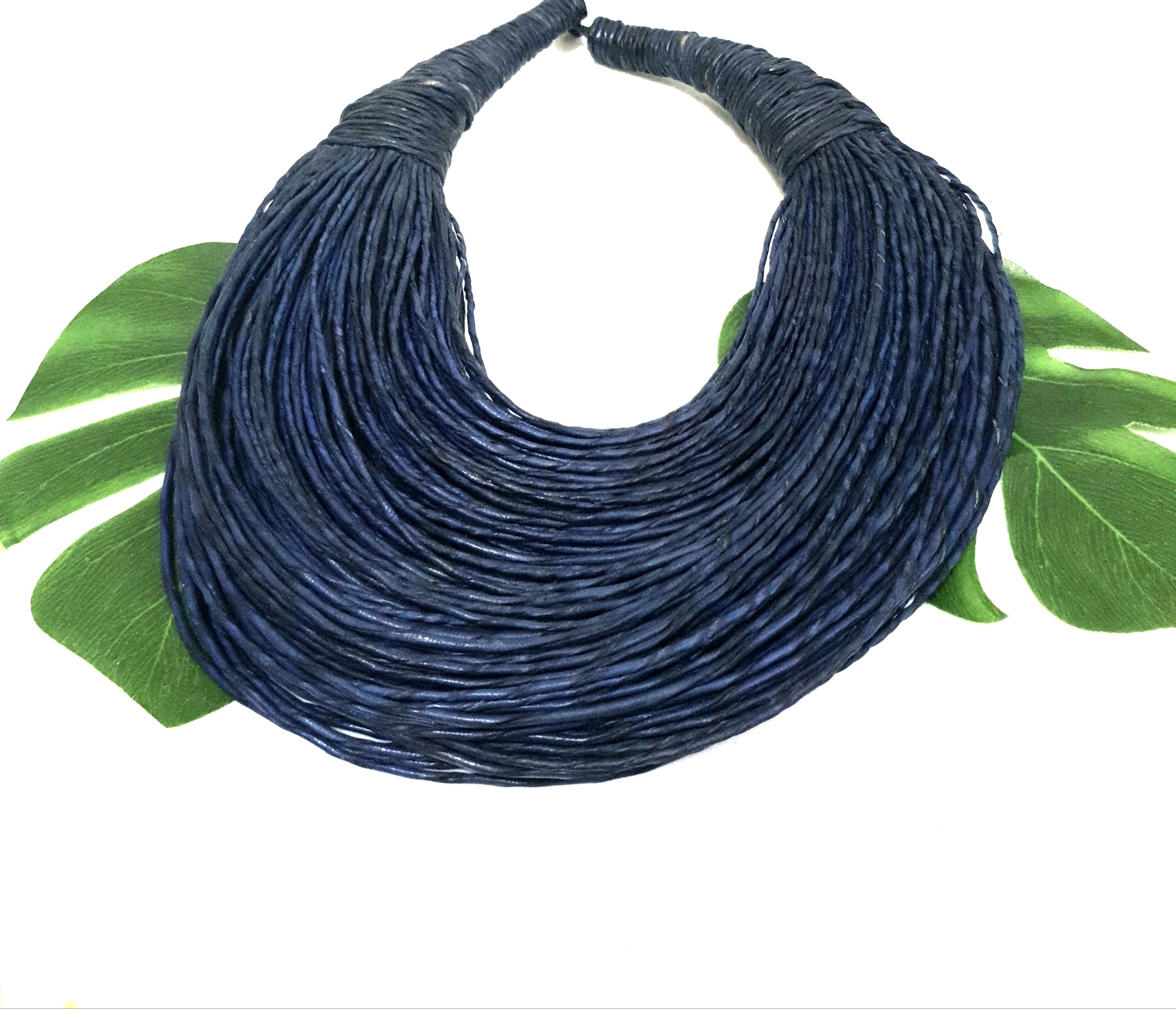 Indigo blue leather layered statement necklace.