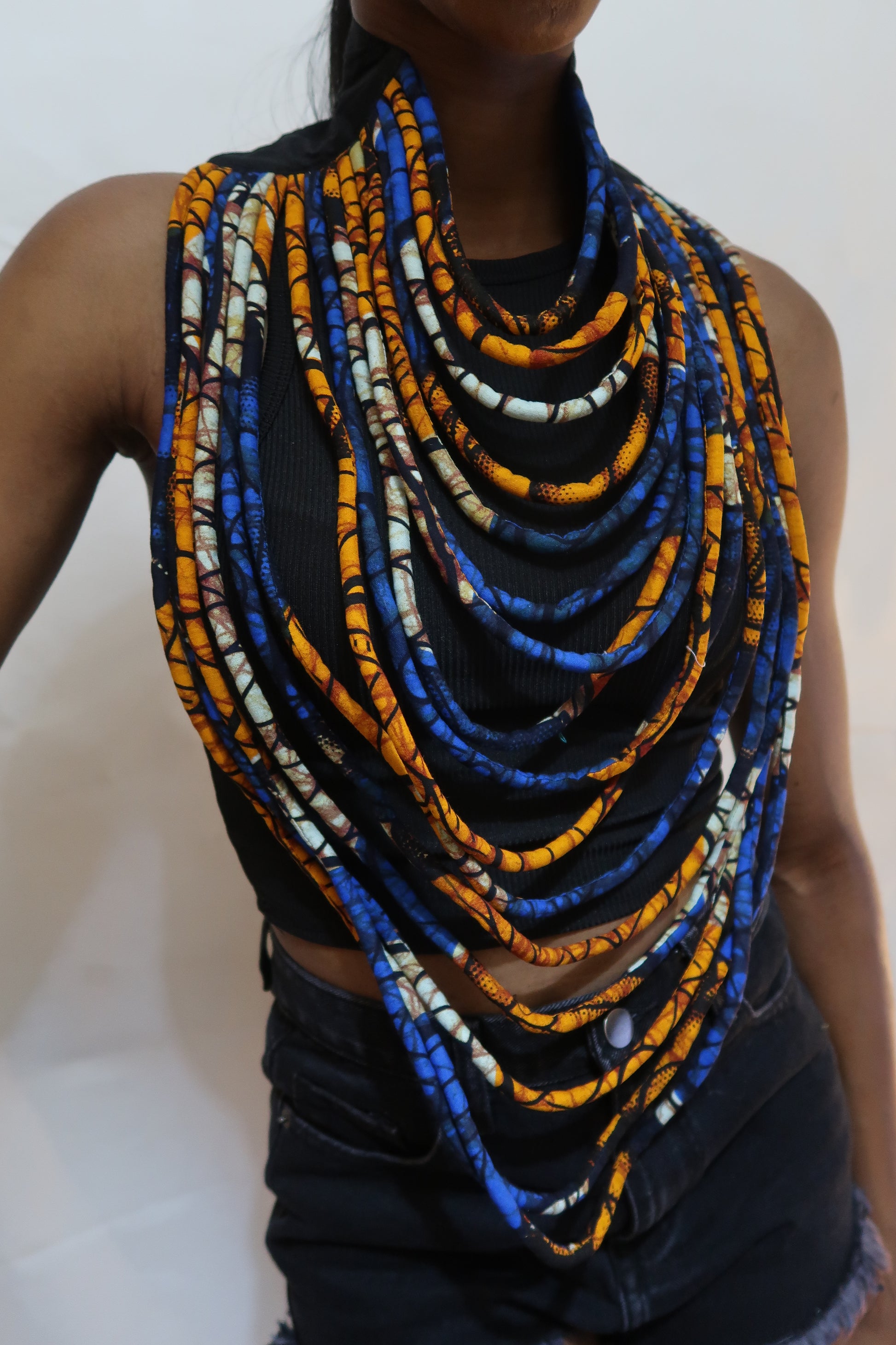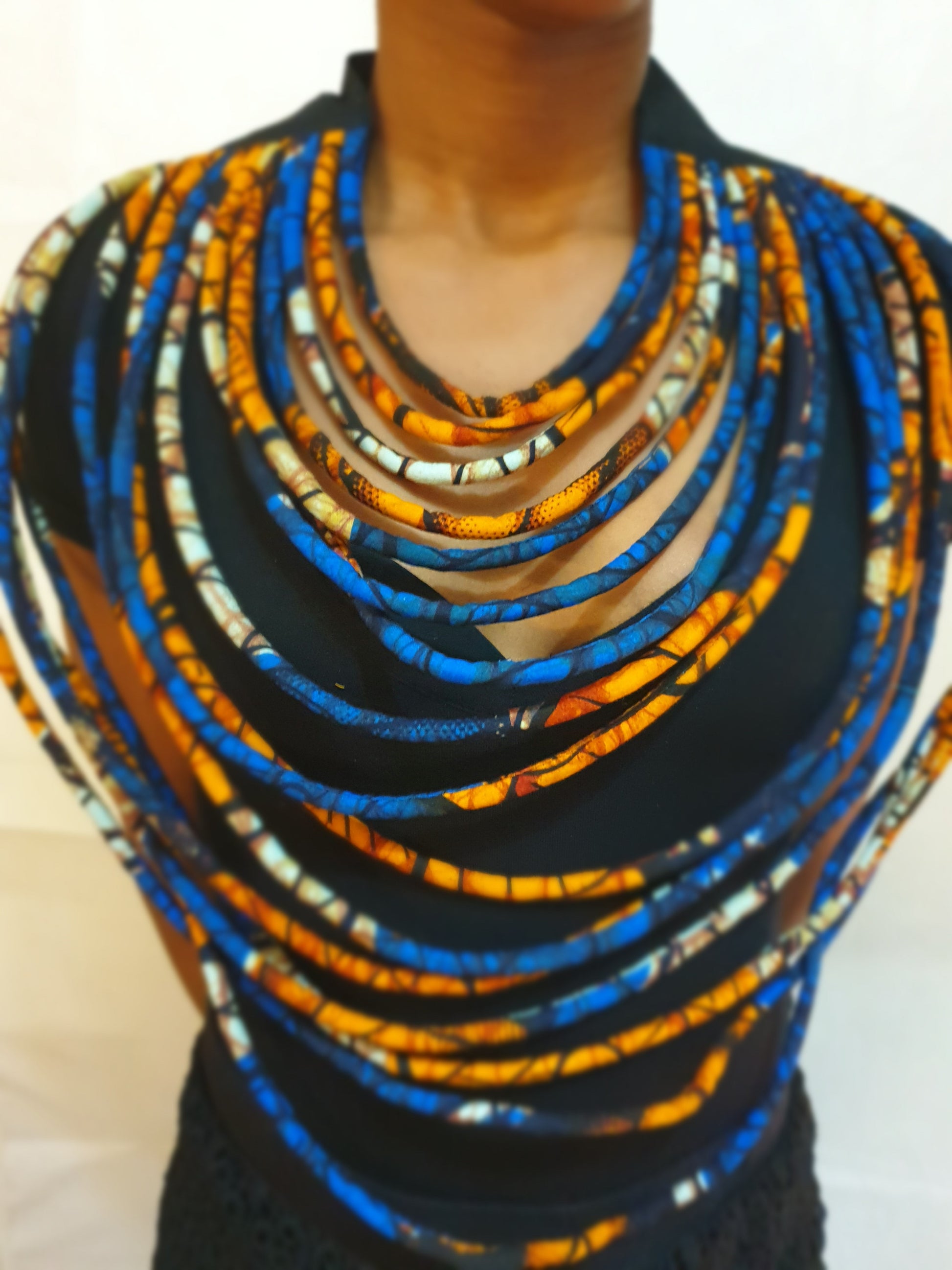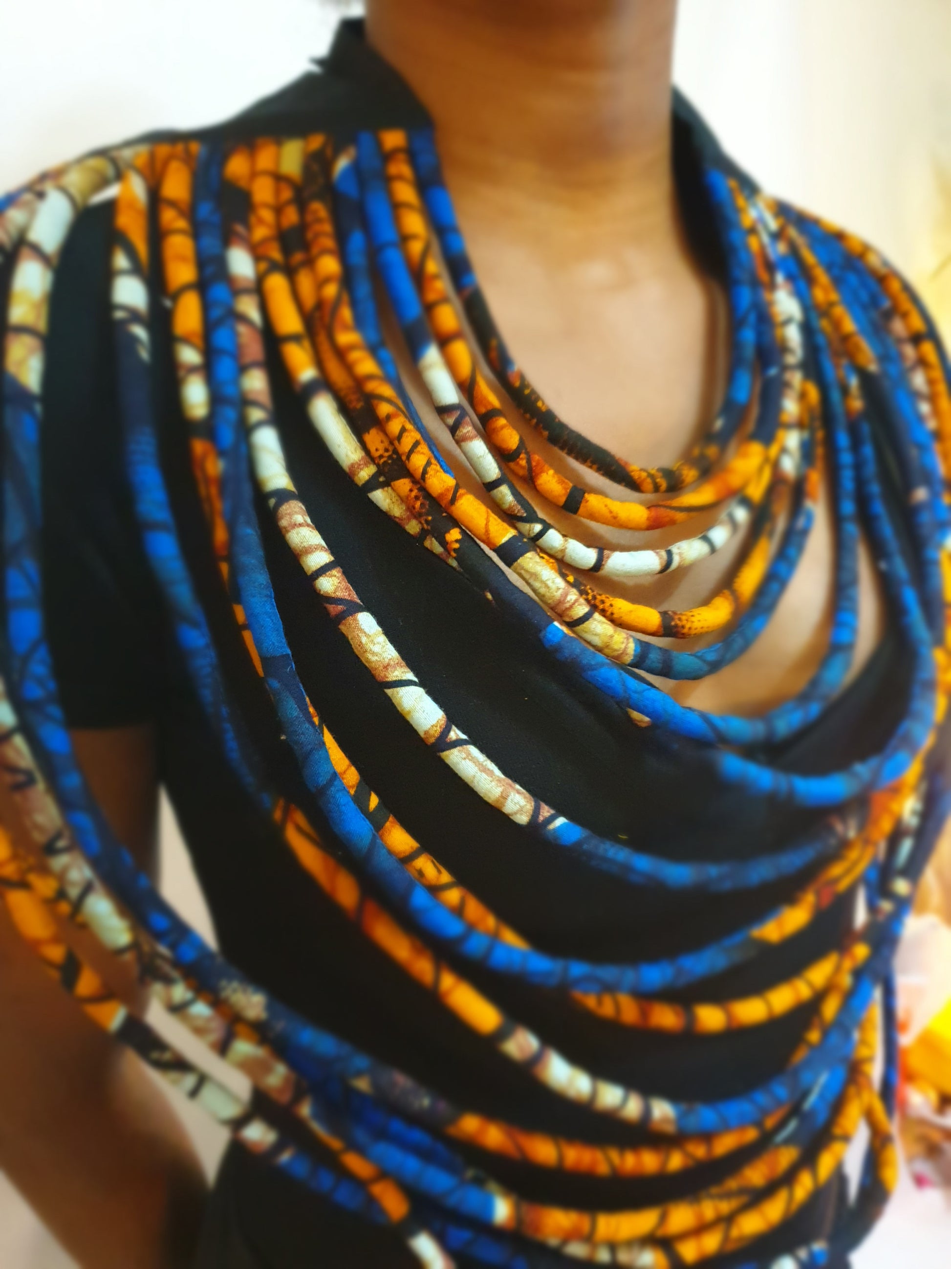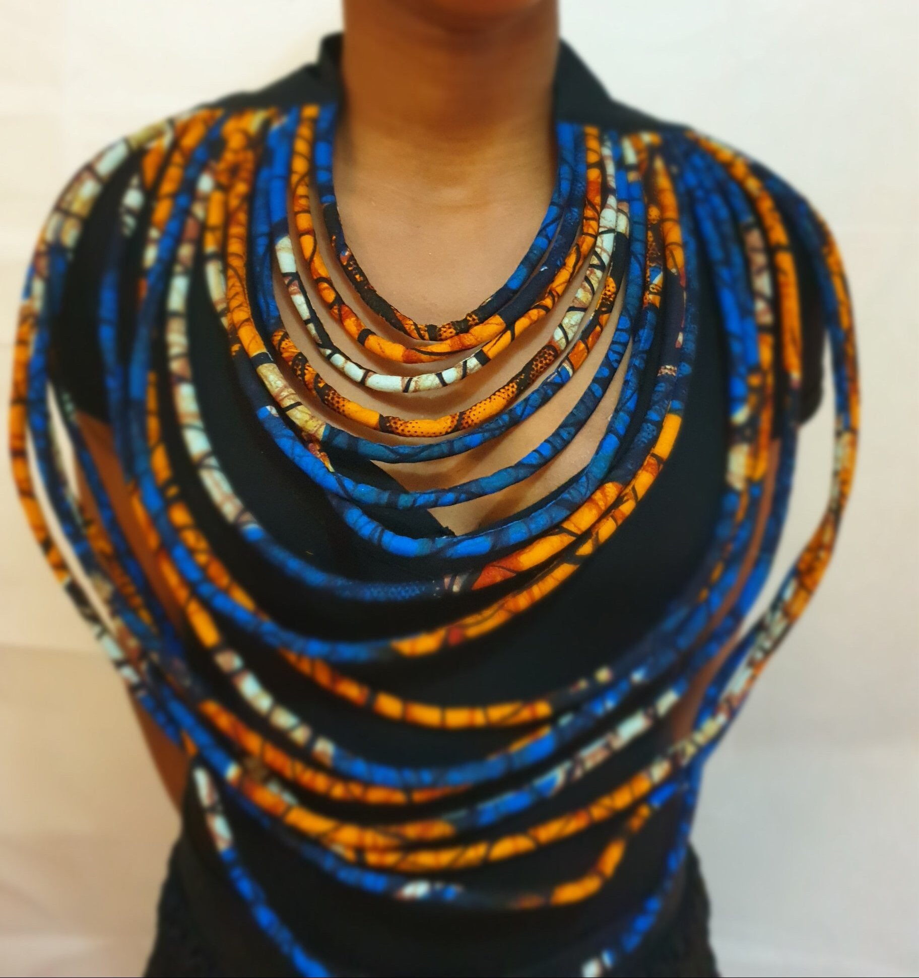 This beautiful handmade kente print statement necklace is made by hand with African fabric.