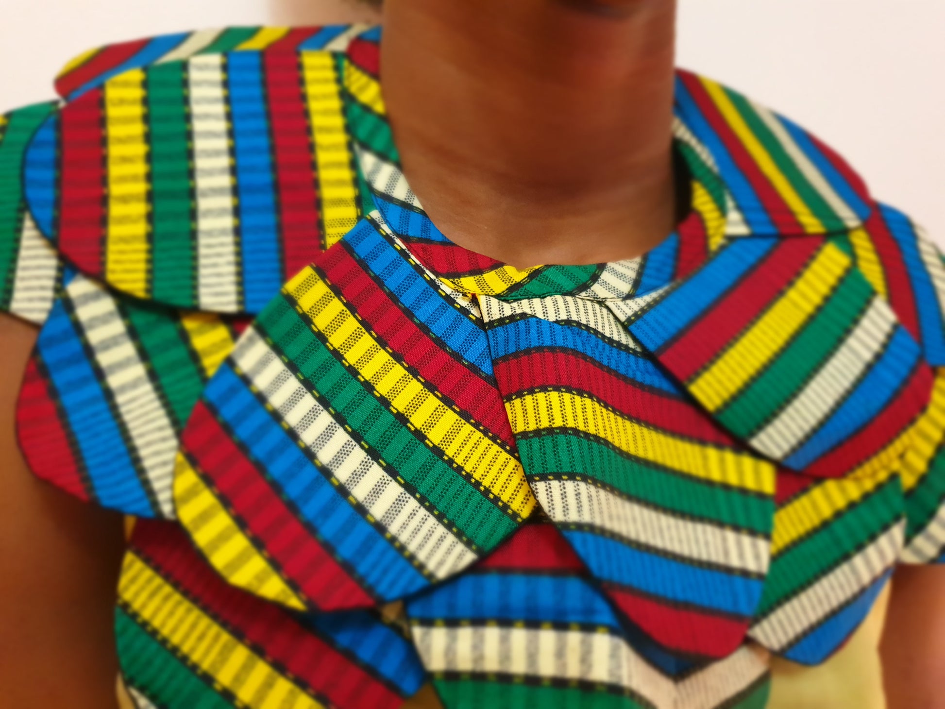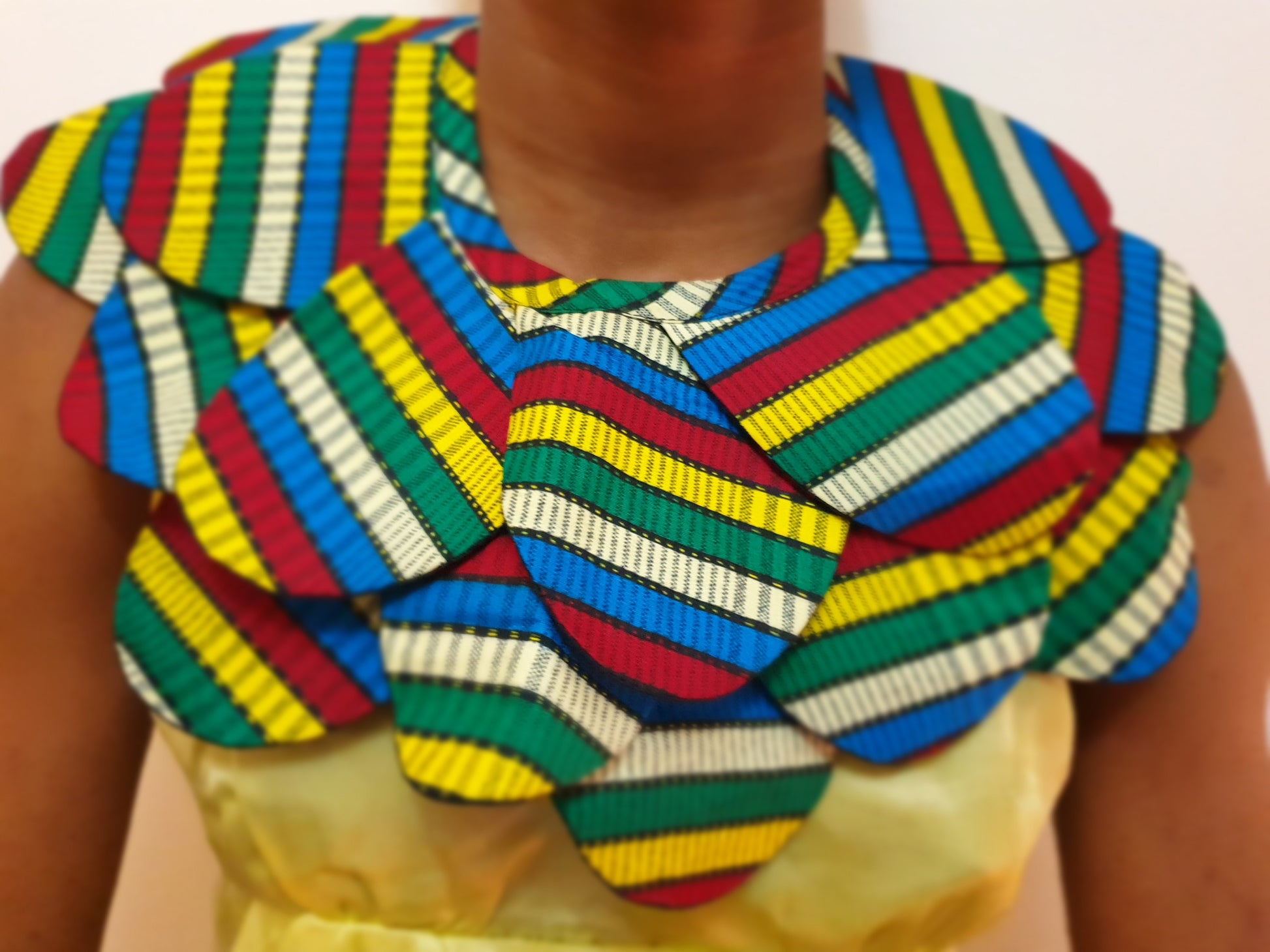This beautiful collar style cape choker statement necklace is made in African fabric.