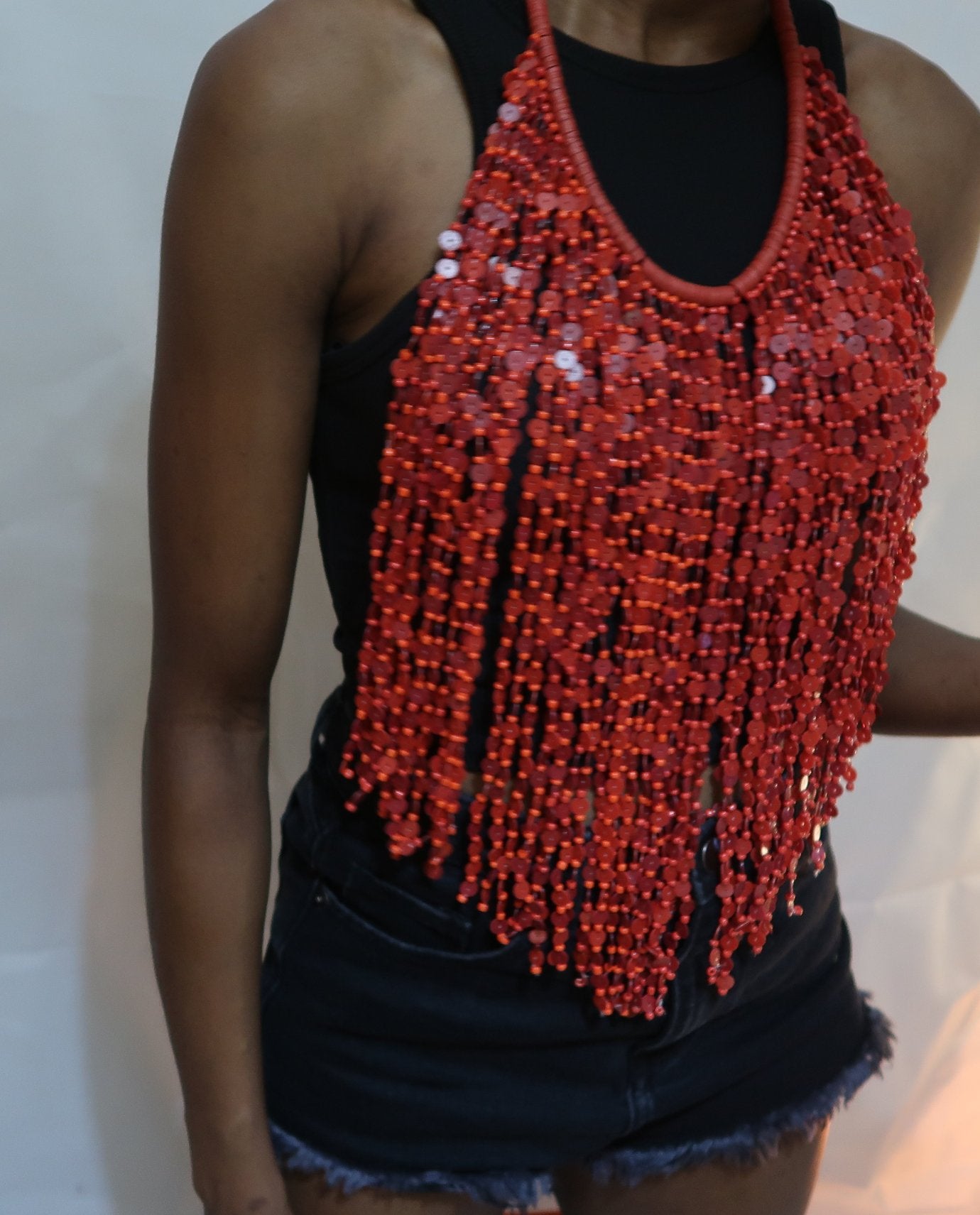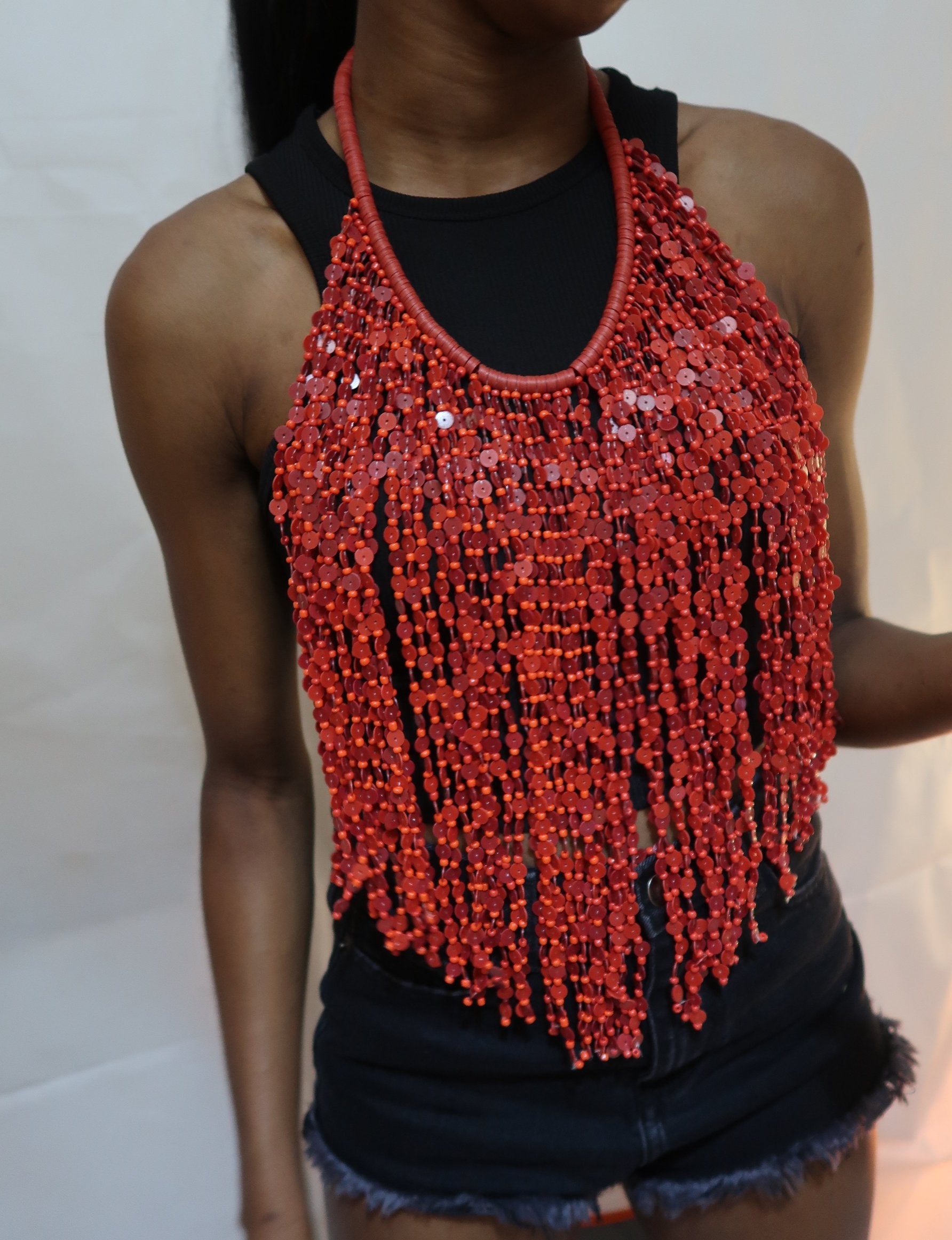 Red bead multi strand statement necklace