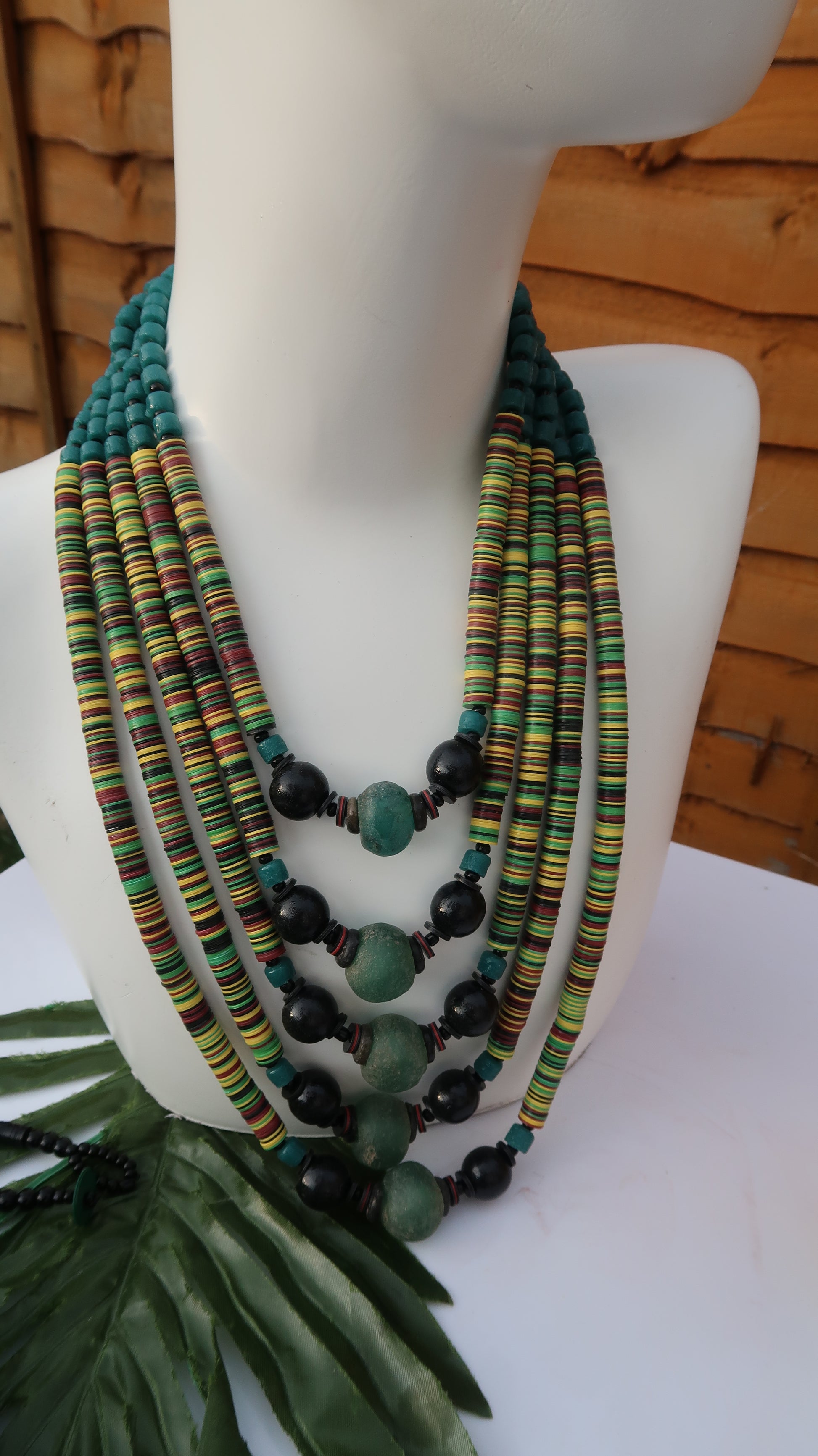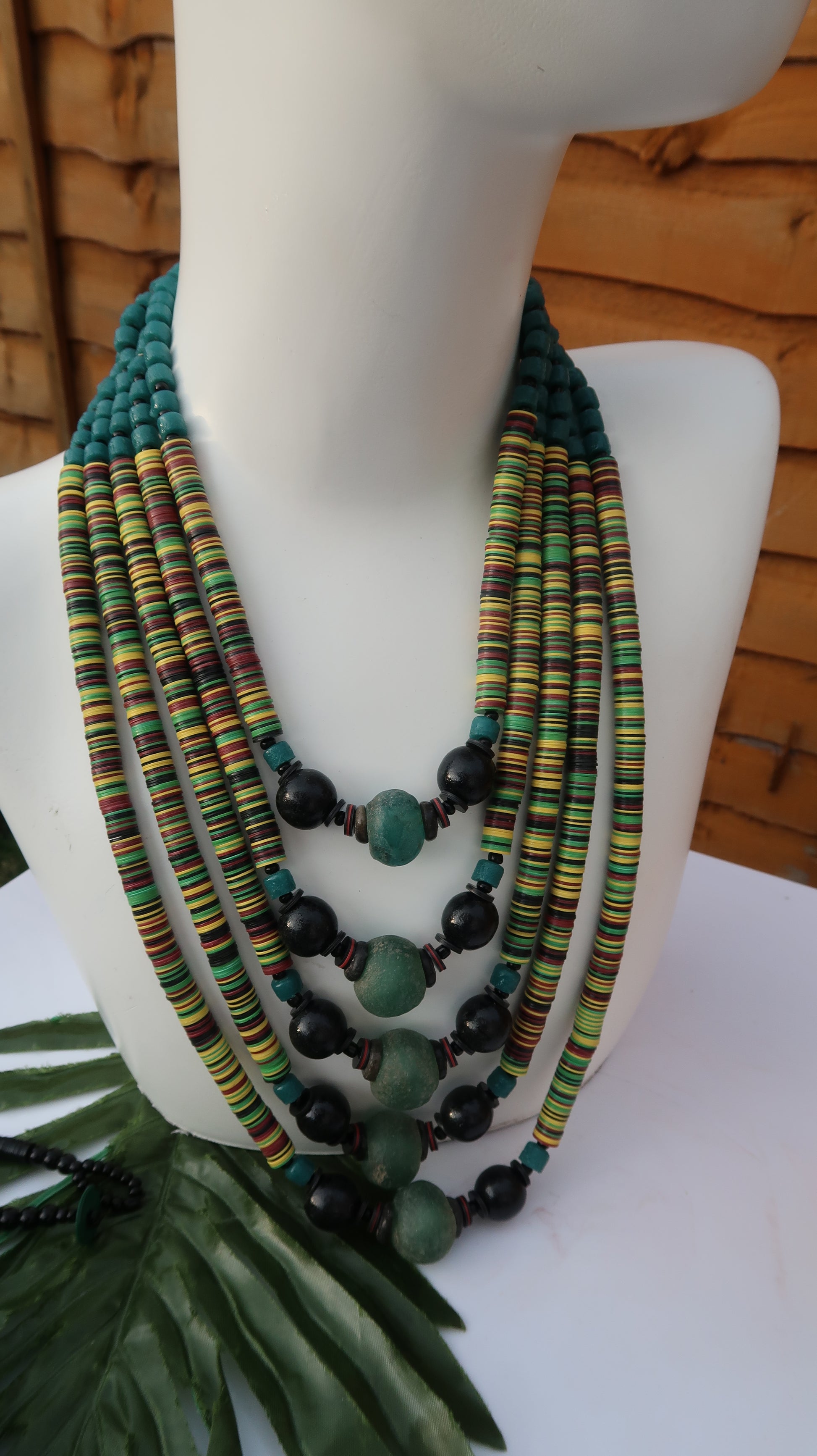 Green multi-coloured statement necklace