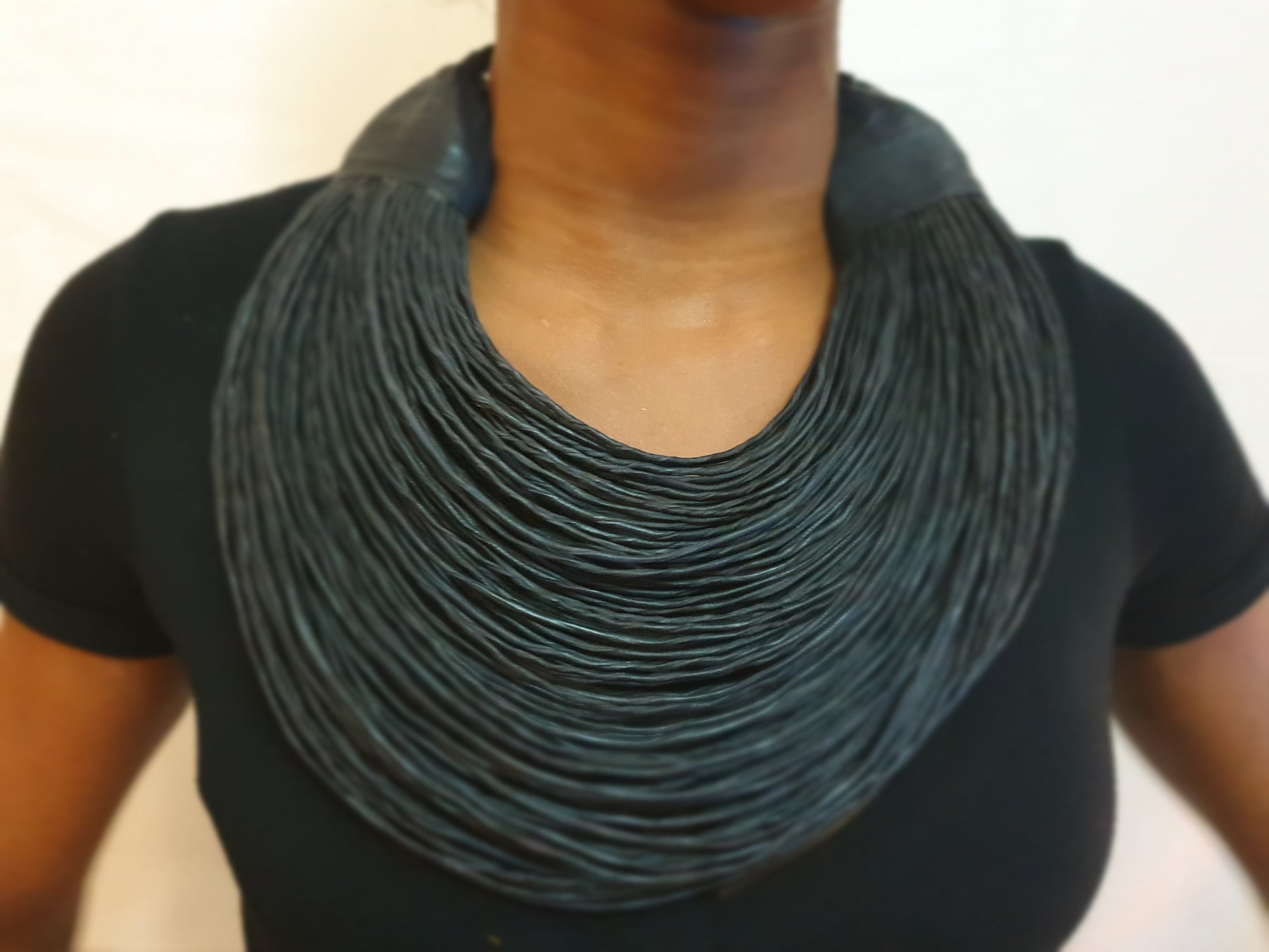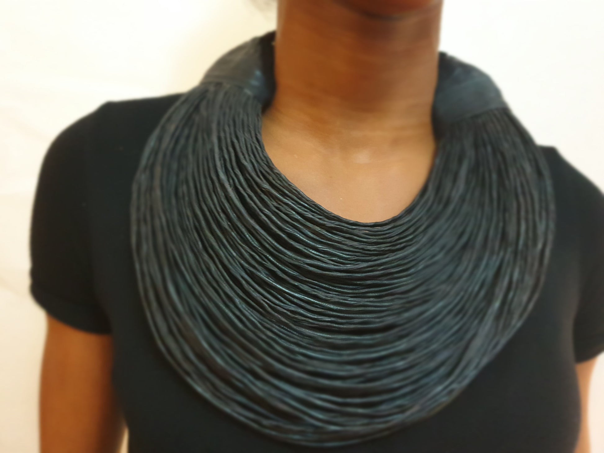 For an extravagant look you can layer more than one leather bib together around your neck.